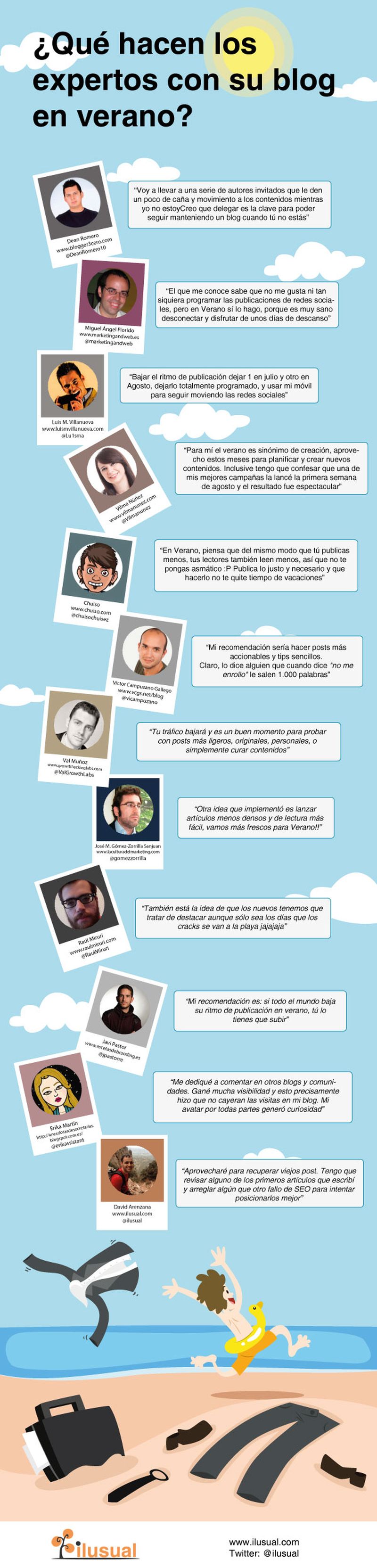 La infografía lleva el título de “¿Qué hacen los expertos con su blog en verano?” y ha sido creada por la gente del sitio ilusual.