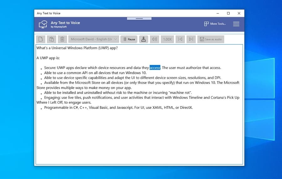 Principales características de Any Text to Voice